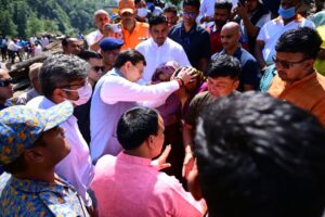मुख्यमंत्री श्री पुष्कर सिंह धामी ने शनिवार को चमोली जनपद के नंदानगर क्षेत्र में आपदा से हुए नुकसान का जायजा लिया और प्रभावितों का हाल जाना। मुख्यमंत्री ने कहा कि संकट की इस घड़ी में सरकार पूरी तरह से प्रभावित परिवारों के साथ खड़ी है। इस दौरान मुख्यमंत्री ने राहत कार्यो की समीक्षा करते हुए अधिकारियों को प्रभावित क्षेत्रों में हुए नुक़सान का विस्तृत आकलन करने के निर्देश दिए। मुख्यमंत्री ने मृतकों के परिजनों को 5-5 लाख की सहायता राशि के चेक भी प्रदान किये।