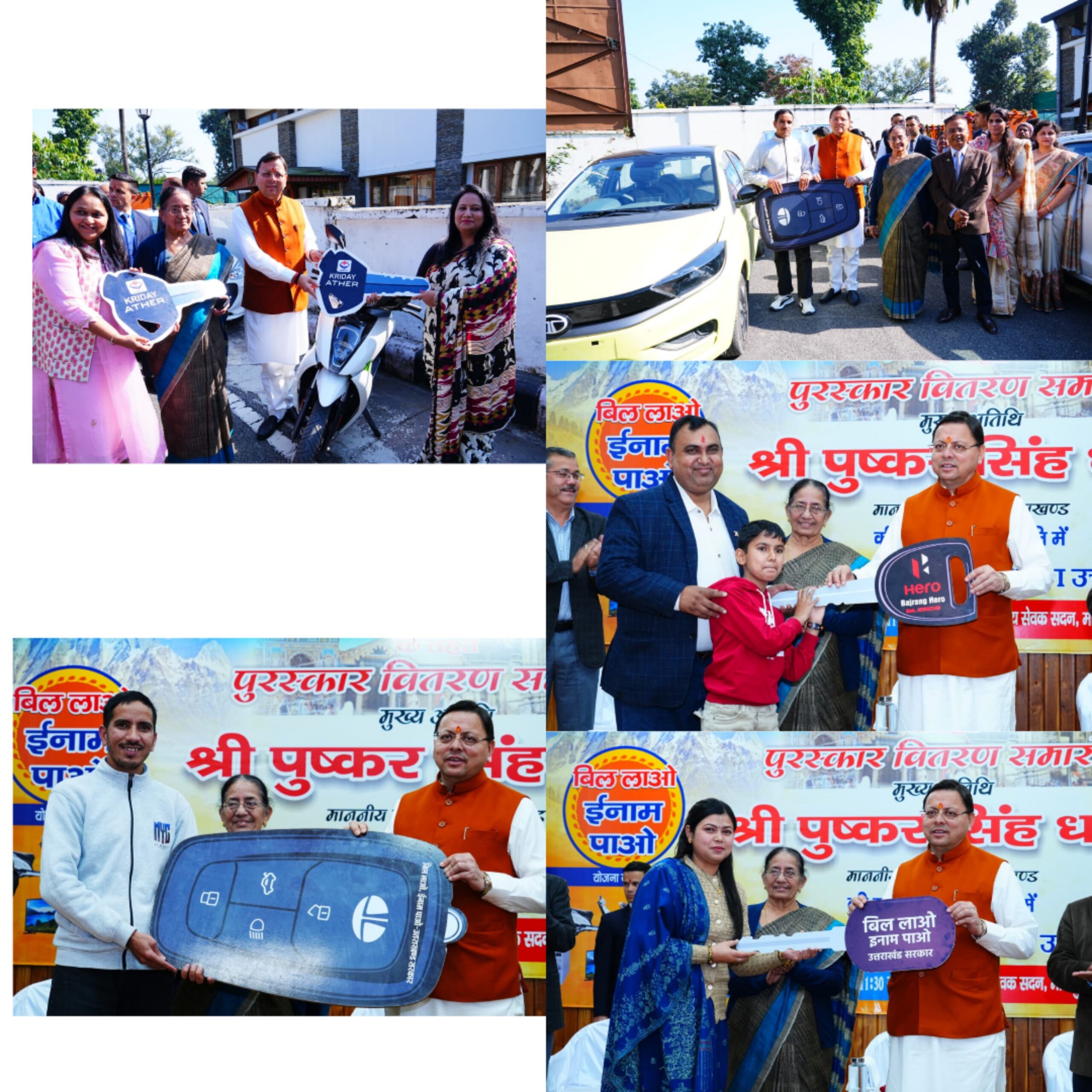 मुख्यमंत्री श्री पुष्कर सिंह धामी ने मंगलवार को मुख्य सेवक सदन में आयोजित कार्यक्रम में ’’बिल लाओ-इनाम पाओ’’ योजना के विजेताओं को पुरस्कार वितरित किए। एक सितंबर 2022 से 31 मार्च 2024 के बीच संचालित इस योजना के तहत कुल 1888 उपभोक्ताओं ने पुरस्कार जीते हैं। कार्यक्रम को संबोधित करते हुए, मुख्यमंत्री पुष्कर सिंह धामी ने विजेताओं को बधाई देते हुए कहा कि योजना में प्रतिभाग करने वाले सभी लोगों ने राज्य के राजस्व संग्रहण को एक नई चेतना, एक नया दृष्टिकोण और एक नई ऊर्जा प्रदान की है। मुख्यमंत्री ने कहा कि वर्ष 2022 में शुरु “बिल लाओ-इनाम पाओ” योजना राज्य सरकार का एक एक नवाचार था, जिसके द्वारा सरकार ने जनभागीदारी को राजस्व संग्रहण से जोड़ने का प्रयास किया। आज तीन वर्षों में “बिल लाओ-इनाम पाओ” योजना ने लोगों के बीच जागरुकता पैदा करने में कामयाबी हासिल की है। मुख्यमंत्री ने कहा कि योजना से जनता में ये समझ बनी है कि प्रदेश के विकास में प्रत्येक बिल एक योगदान है। योजना आज जहां एक ओर उपभोक्ता जागरूकता का सशक्त माध्यम बनी है, वहीं उपभोक्ता एवं व्यापारी वर्ग के बीच साझा जिम्मेदारी का प्रतीक भी बनकर उभरी है।मुख्यमंत्री पुष्कर सिंह धामी ने कहा कि पिछले 11 वर्षों में व्यापार, उद्यम, क्रिएटिविटी को साथ लेकर आदरणीय प्रधानमंत्री श्री नरेंद्र मोदी जी के नेतृत्व में देश ने एक नया विश्वास पैदा करने का प्रयास किया है। प्रधानमंत्री जी के नेतृत्व वाली डबल इंजन की सरकार में व्यापारियों को ’’प्रोत्साहन’’ और ’’प्रॉफिट’’ के साथ ही ’’प्रोटेक्शन’’ भी मिला है। राज्य सरकार भी इसी क्रम में “ईज ऑफ डूइंग बिजनेस” और “व्यापार सुधार कार्य योजना” के माध्यम से राज्य में निवेश और उद्यमिता के लिए अनुकूल वातावरण तैयार करने का प्रयास कर रही है।मुख्यमंत्री ने कहा कि सरकार ने राज्य में ’’राजकोषीय अनुशासन’’ को मजबूती से स्थापित किया है। इसी का परिणाम है कि राज्य ’’राजकोषीय घाटे को निर्धारित सीमा के भीतर रखने में सफल’’ रहा है। इस प्रयास को राष्ट्रीय स्तर पर भी सराहना मिली है, हाल ही में जारी ’’अरुण जेटली नेशनल इंस्टीट्यूट ऑफ फाइनेंशियल मैनेजमेंट’’ की रिपोर्ट में उत्तराखंड को ’’देश के सर्वश्रेष्ठ वित्तीय प्रबंधन वाले राज्यों’’ में स्थान दिया गया है। इसके साथ ही ’’सतत विकास लक्ष्यों’’ के राष्ट्रीय सूचकांक में भी ’’उत्तराखंड पूरे देश में शीर्ष स्थान’’ पर है।मुख्यमंत्री धामी ने कहा कि जब जनता सरकार पर भरोसा करती है, और सरकार भी जनता के साथ पारदर्शी तरीके से व्यवहार करती है तो विकास की गति अपने आप कई गुना बढ़ जाती है। यही कारण है कि राज्य सरकार ने वित्तीय प्रबंधन के क्षेत्र में नवाचारों के अधिकतम प्रयोग पर बल दिया है। मु
